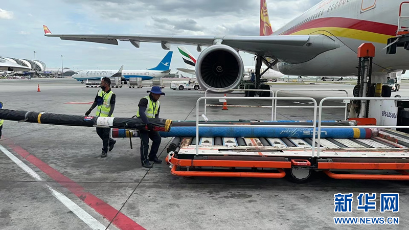 地面服务人员正在进行超规行李托运保障任务。新华网发