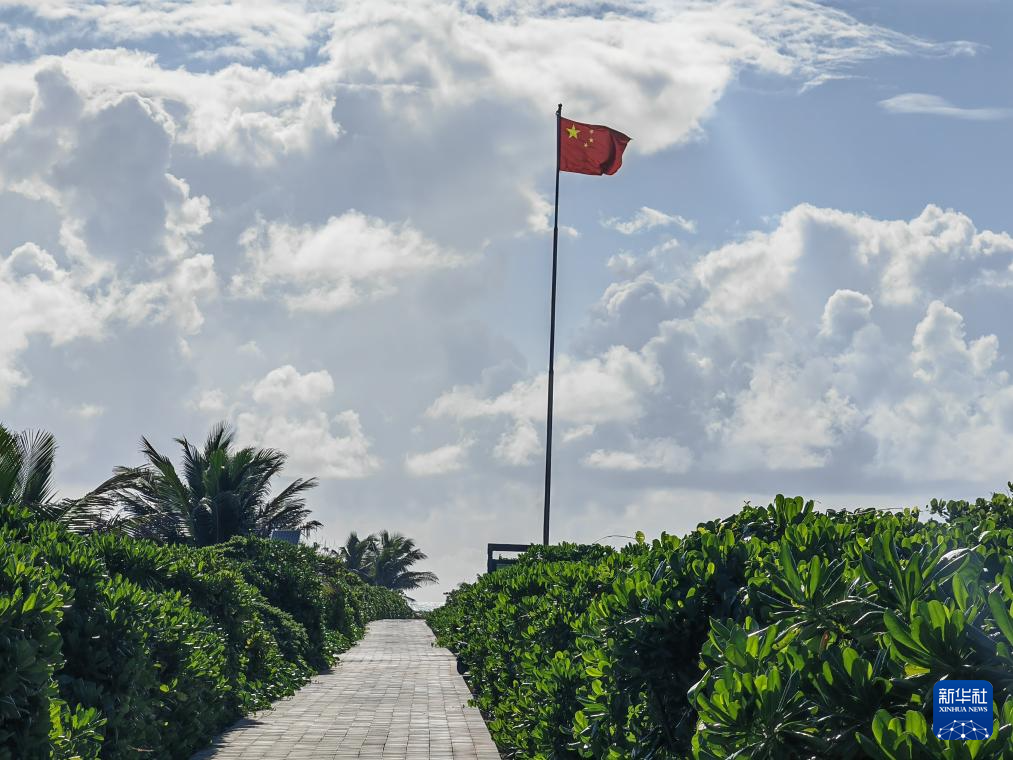 9月29日,记者在三沙市七连屿北岛一角看到的五星红旗。新华社记者 夏天 摄