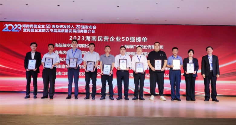 2023年12月15日,“2023海南民营企业50强及研发投入20强发布会暨民营企业助力屯昌高质量发展招商推介会”在海南屯昌举行。会上,海南省工商联发布“2023海南民营企业50强”榜单,海南省工商联、海南省科技厅联合发布“2023海南民营企业研发投入20强”榜单。海航航空集团凭借良好的企业运营表现位列“2023海南民营企业50强”第1名及“2023海南民营企业研发投入20强”第12名。(何思源)