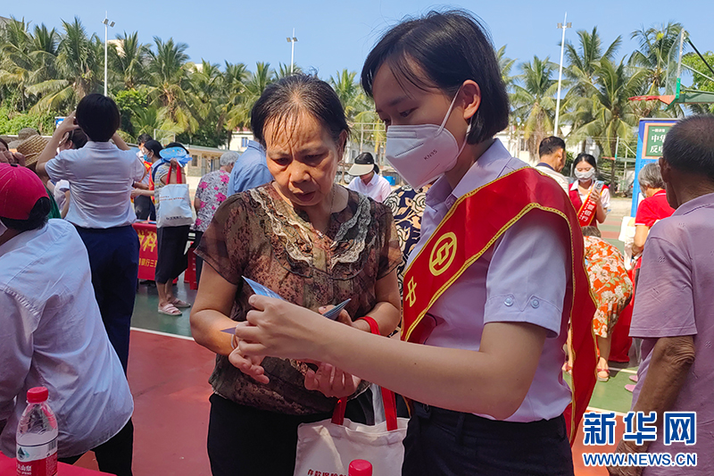 海南中行员工进社区给老年客户宣讲金融安全知识。新华网发