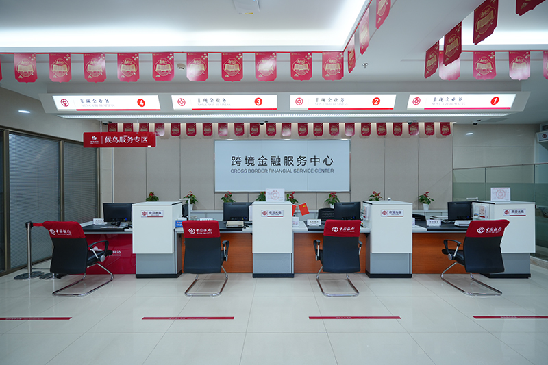 海南中行营业厅跨境金融服务中心及候鸟服务专区。新华网发