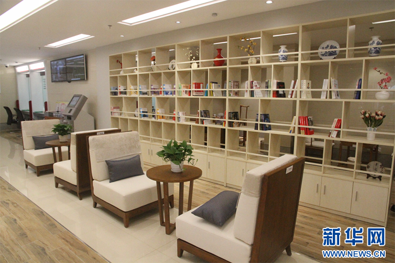 海南中行三亚亚北支行养老特色网点厅堂一角。新华网发