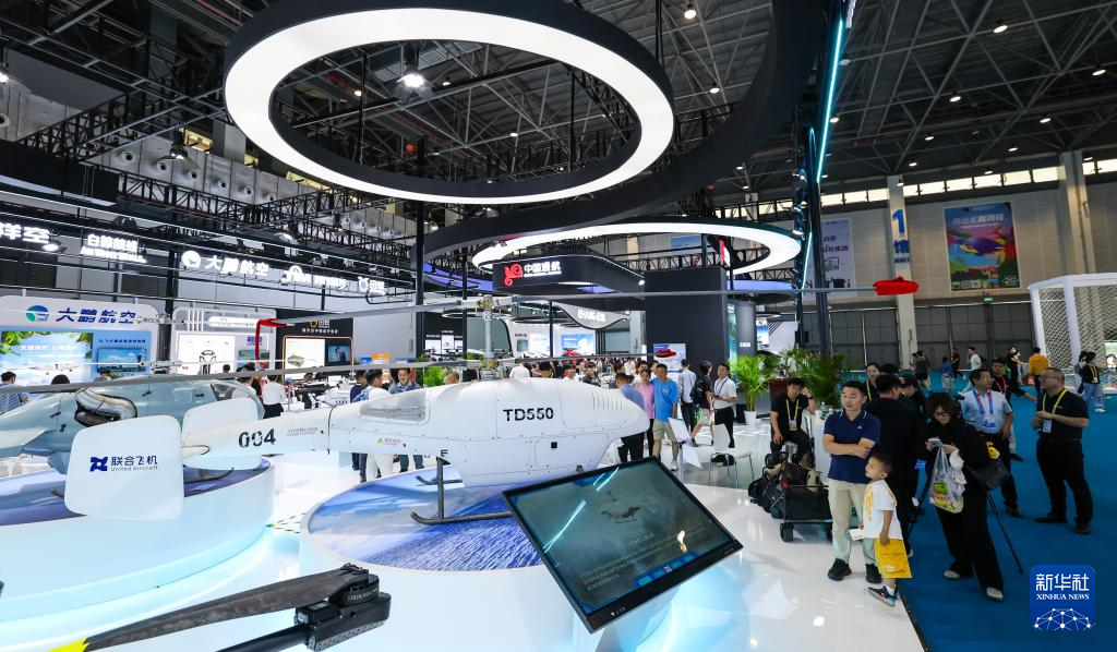 4月14日拍摄的第五届消博会低空经济展示专区。新华社记者 蒲晓旭 摄