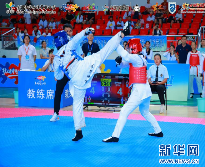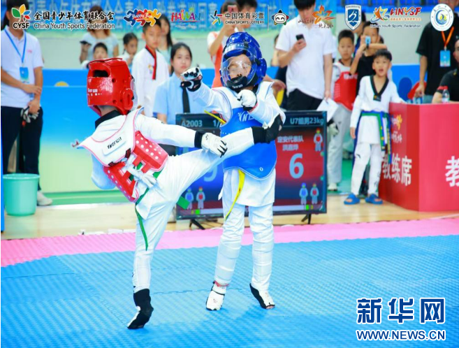 赛场上,选手们个个精神抖擞,斗志昂扬。品势赛中,他们一招一式刚劲有力,将动作的精准与韵律展现得淋漓尽致;竞技赛中,选手们灵活闪躲、迅猛出击,腿法凌厉似风。每一次踢击、每一声呐喊,都彰显着对跆拳道的热爱与执着。场边观众掌声与呐喊声不断,为少年们的每一次精彩表现喝彩,山海间的赛场满是青春热血的气息。