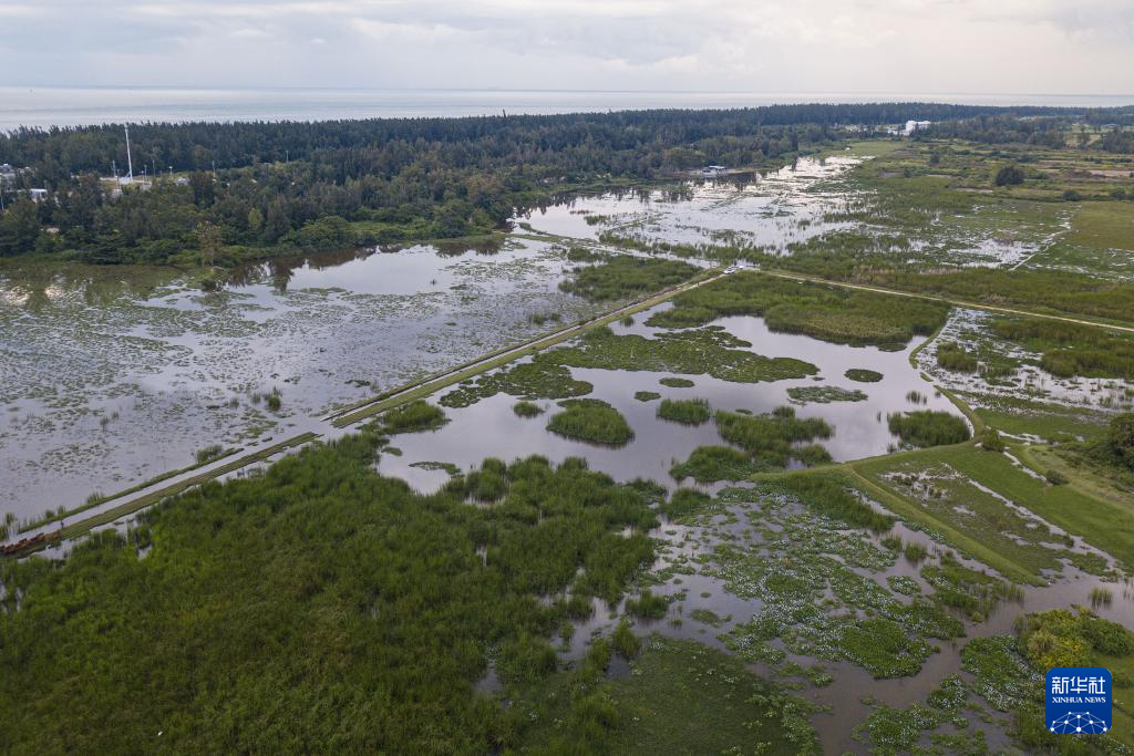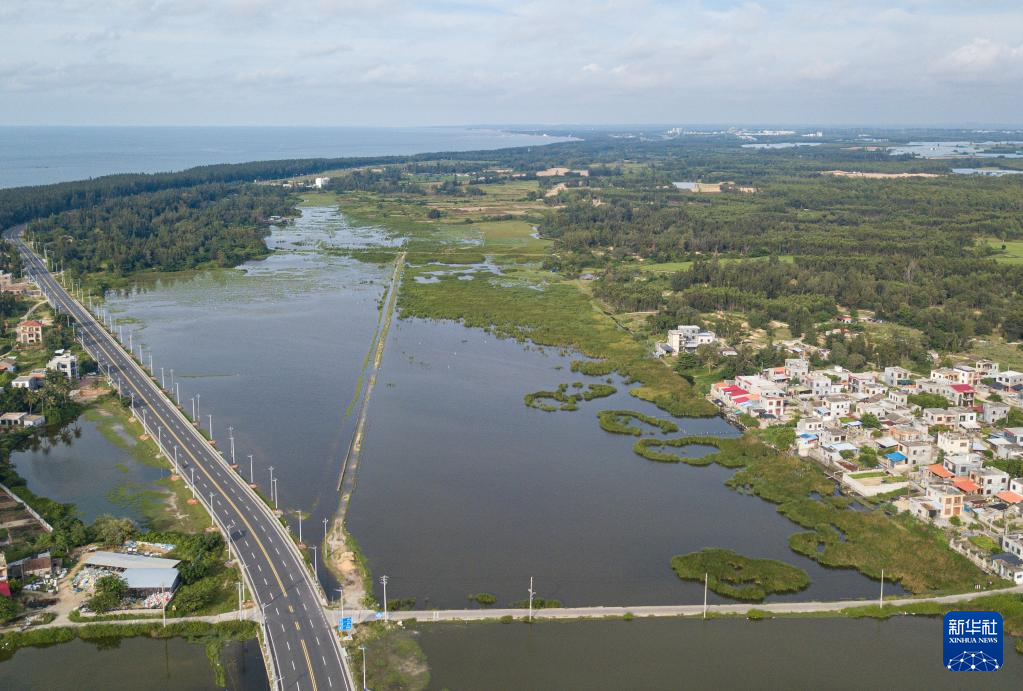10月3日在海南省昌江黎族自治县拍摄的海南昌江海尾国家湿地公园一隅(无人机照片)。新华社记者 蒲晓旭 摄