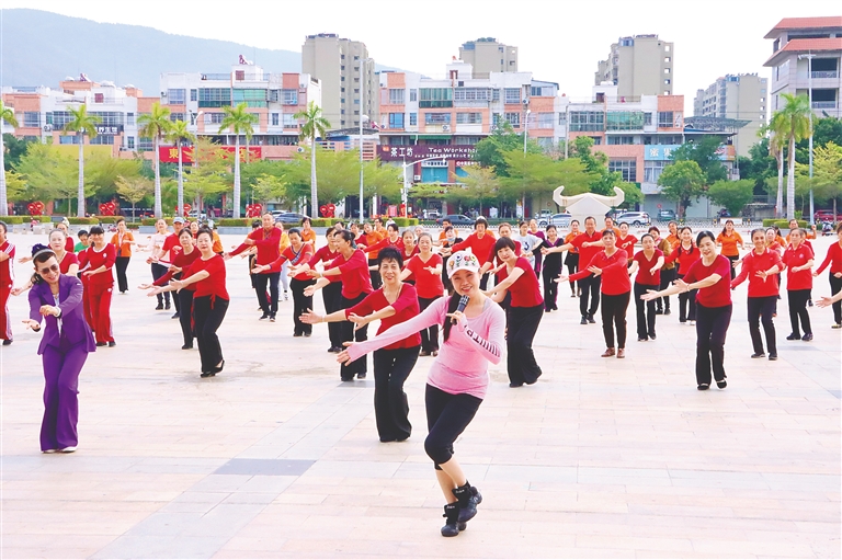 “黎花知音”乡村课堂公益行项目在昌江文化公园开展舞蹈教学活动。