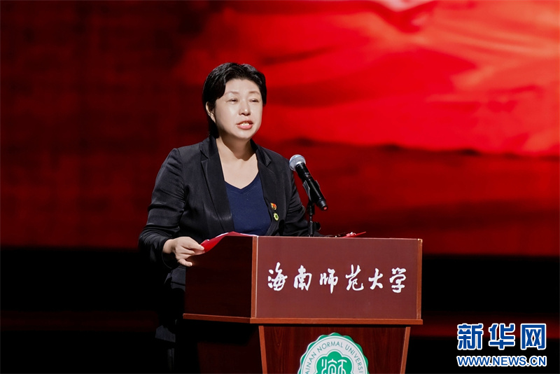 海南师范大学党委书记许玫以“传承精神谱系 勇担时代使命”为主题讲授思政课。新华网发