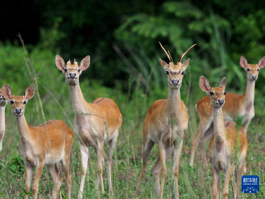生活在海南热带雨林国家公园中的坡鹿。新华社发