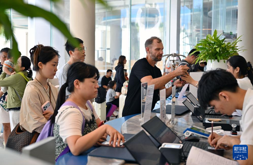 10月18日,游客在海南陵水一家酒店的前台办理手续。新华社记者 郭程 摄