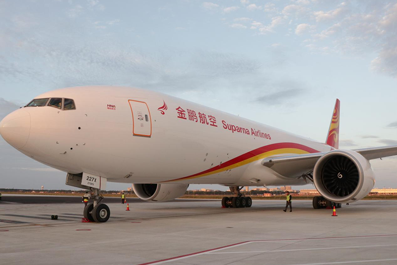 今年9月25日,公司已成功引进了第一架B777F全货机,编号为B-227U。自投入运营以来,这架货机成功执行上海浦东=孟买、上海浦东=德里、上海浦东=阿姆斯特丹以及南京=阿姆斯特丹等航线。这些航线为中国与南亚、欧洲地区的重要经济中心架起了空中桥梁,不仅为对外贸易往来提供了有力的物流支持,还帮助金鹏航空积累了宝贵的B777F货机运营经验。
