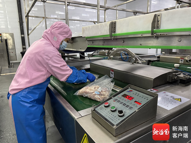 “这一批文昌鸡共6500袋,将发往新加坡市场。”在工厂内,海南 ( 潭牛) 文昌鸡股份有限公司加工中心总监周宏伟介绍道,为保留文昌鸡的地道风味 ,企业采用了全自动白切鸡煮制线和液氮速冻锁鲜技术,提升了文昌鸡的品质和口感。“当下已经进入了文昌鸡的销售旺季,订单量提升近三倍,每天单量已经排满,这些文昌鸡将销往国内外。”周宏伟说。