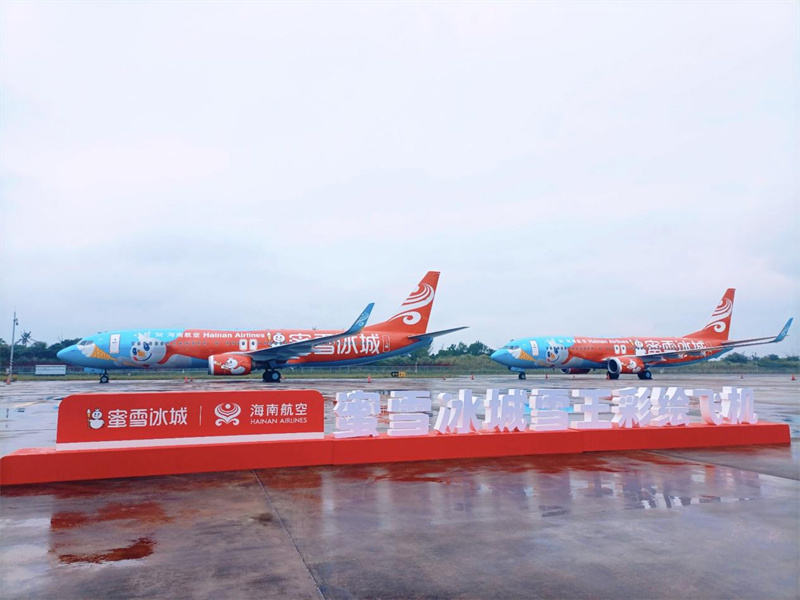 海航技术旗下海航斯提斯顺利完成两架蜜雪冰城“雪王号”飞机彩绘业务。新华网发