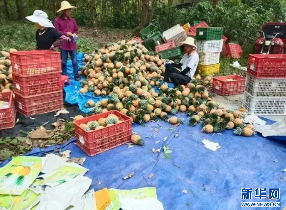 白沙黎族自治县七坊镇打金村农户正在分拣凤梨。新华网发