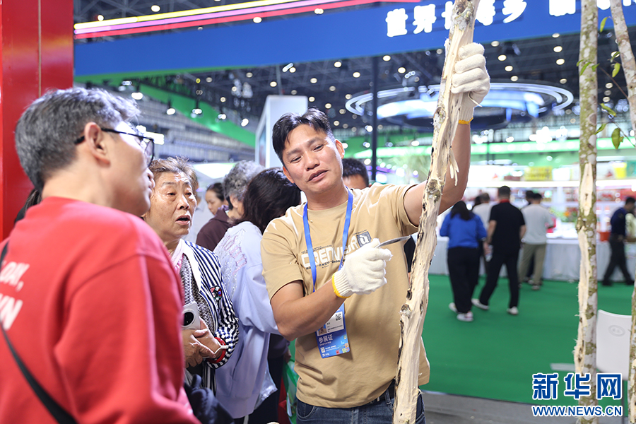 展会上,海南沐香缘香料农业科技有限公司的沉香采香演示吸引众多观众驻足。公司董事长朱冠表示,通过现场展示结香与采香过程,能让公众更直观了解沉香文化,促进产业与消费对接。