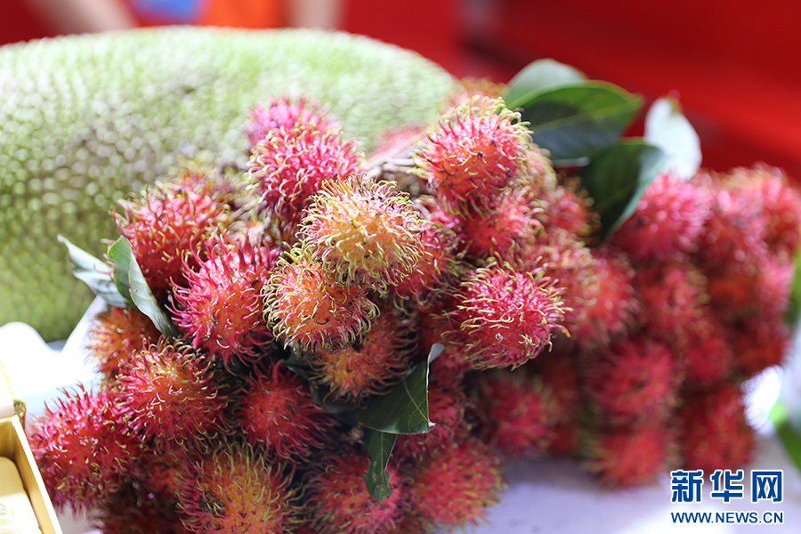 展馆内展示的新鲜红毛丹。新华网 王雯君 摄