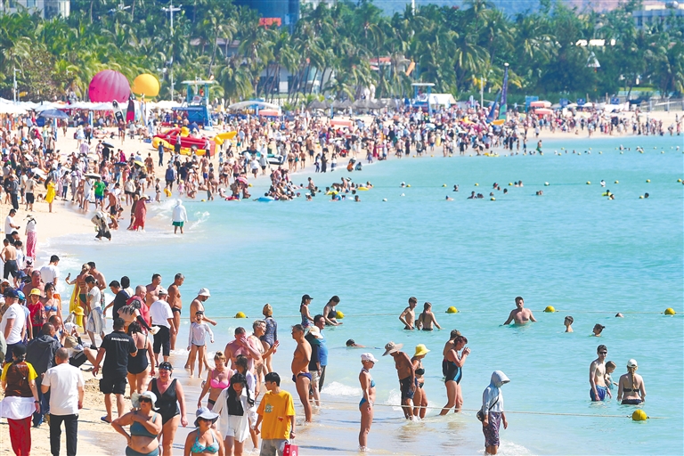 12月27日,三亚市大东海旅游区阳光和煦,众多国内外游客在此游玩,感受热带海滨风光。在线旅游平台数据显示,三亚2026年元旦往返机票预订热度环比涨幅超75%,成为国内游客避寒跨年首选目的地之一。海南日报全媒体记者 王程龙 摄