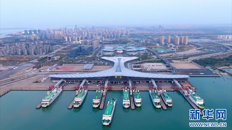 船舶正在驶入新海港。新华网发