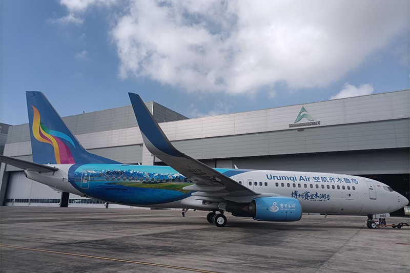 近日,海南海航斯提斯喷涂服务有限公司(以下简称“海航斯提斯”)在海口圆满完成乌鲁木齐航空“博州赛里木湖号”主题飞机涂装作业,这架身披“湖光山色”彩衣的飞机顺利出库后即将投入运营,为新疆文旅与航空出行融合注入新活力。