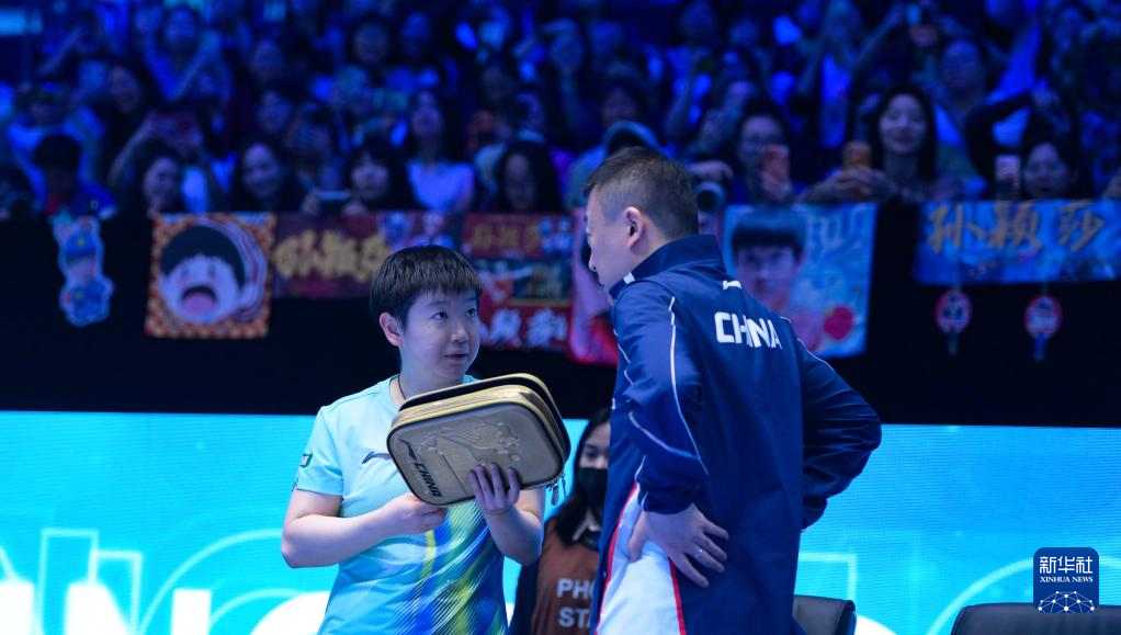 2月7日,孙颖莎(左)与教练马琳在比赛结束后沟通。新华社记者 杨冠宇 摄