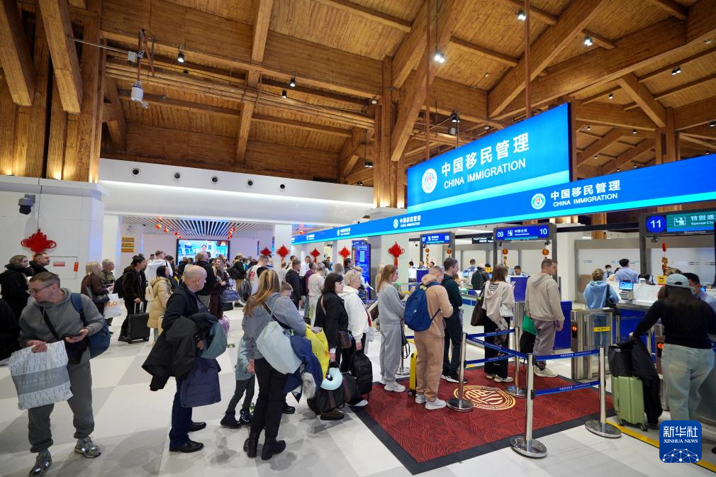 2月23日,旅客在三亚凤凰国际机场边检大厅排队候检。新华社发(蒙绪顺 摄)