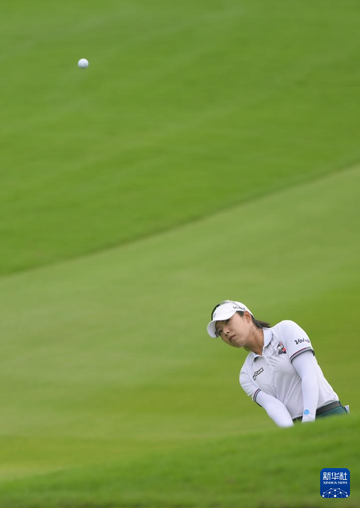 3月6日,韩国选手李美香在比赛中。两轮结束后,她以133杆、低于标准杆11杆的成绩排名第一。新华社记者 杨冠宇 摄