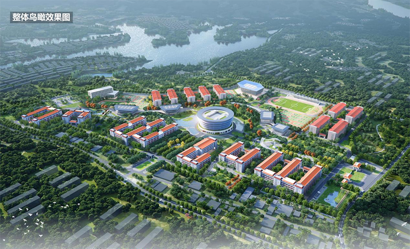 海南软件职业技术学院官塘校区整体鸟瞰效果图。