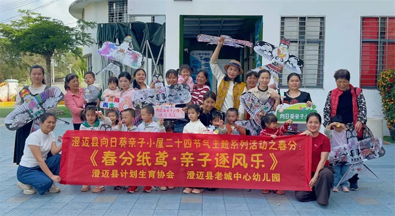 3月15日,澄迈县计生协在县级“向日葵亲子小屋”项目点——老城中心幼儿园,开展二十四节气之春分主题亲子活动《春分纸鸢·亲子逐风乐》,将节气文化、亲子互动与健康科普深度融合。活动现场,工作人员通过暖场律动调动亲子参与热情,讲解春分传统民俗知识,普及远眺护眼等健康常识。随后,工作人员组织亲子手绘纸鸢,让家长、孩子们在感受传统民俗魅力的同时,增进亲子感情,养成健康生活习惯。