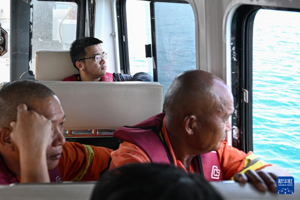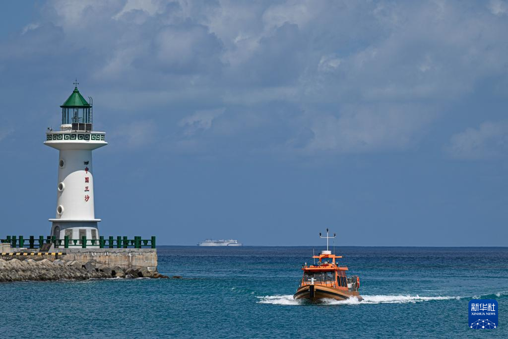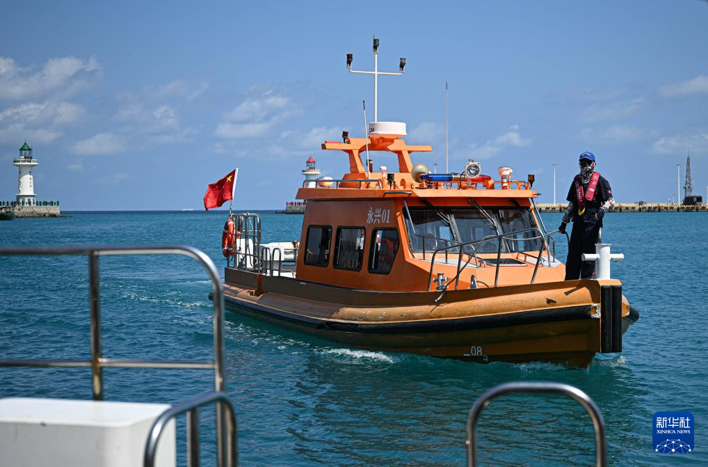 3月19日,工作人员驾驶海上交通保障船由海南三沙永兴岛驶往赵述岛。新华社记者 蒲晓旭 摄