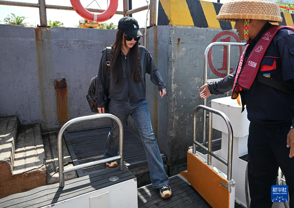 3月20日,乘客在海南三沙赵述岛码头登上海上交通保障船。新华社记者 刘莲芬 摄