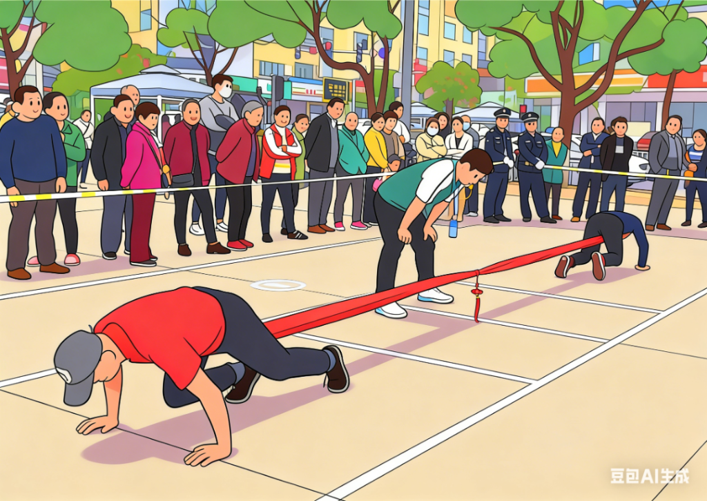分别系在两位参赛者的腰间