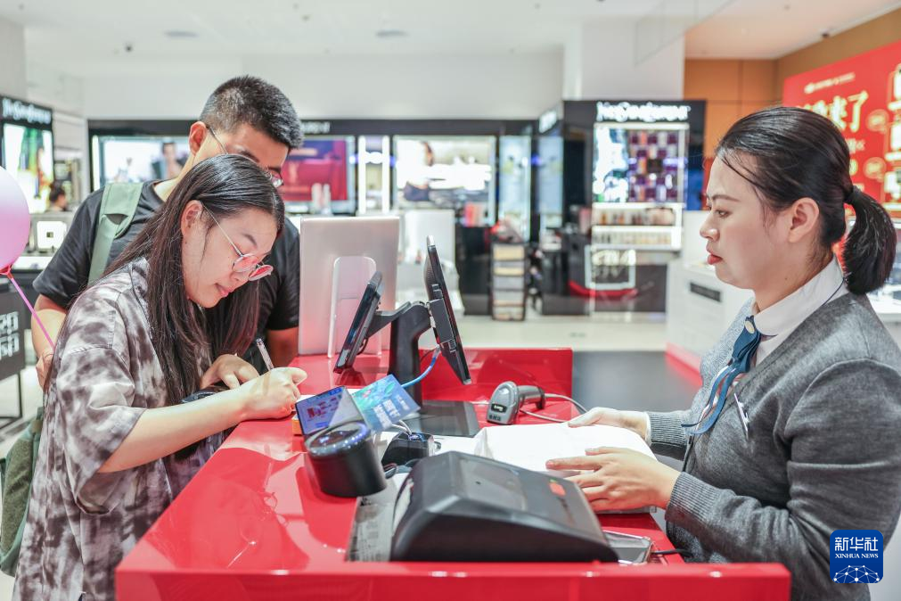 3月25日,顾客在海口日月广场免税店购物。新华社记者 张丽芸 摄