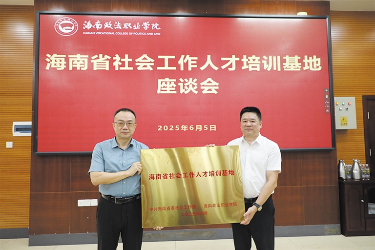6月5日,省委社会工作部、海南政法职业学院携手共建的海南省社会工作人才培训基地在海南政法职业学院落户。(海南政法职业学院供图)