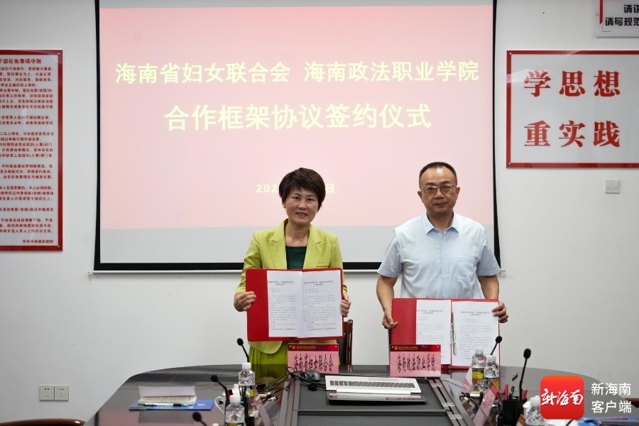 7月8日,海南省妇女联合会与海南政法职业学院在海口召开座谈会,双方围绕未成年人保护工作的难点堵点问题、如何更好推进妇女儿童权益保护工作进行座谈,并经友好协商,当天双方举行了合作框架协议签约仪式。