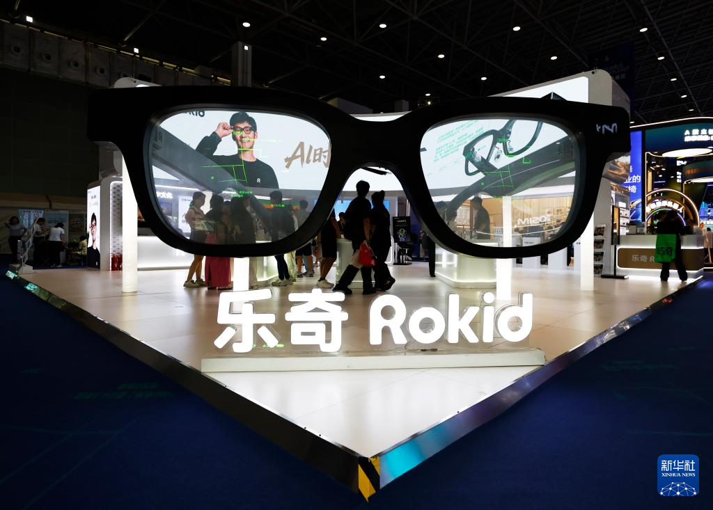 4月14日,在第六届消博会科技消费展区,人们在乐奇展台了解AI眼镜。新华社记者 高静 摄