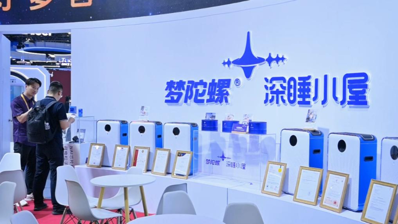 第六届中国国际消费品博览会1号馆内,一间梦陀螺“深睡小屋”人气高涨,成为现场备受关注的健康消费体验项目。