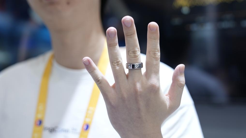 工作人员在展示RingConn智能戒指。新华社记者 许雨深 摄