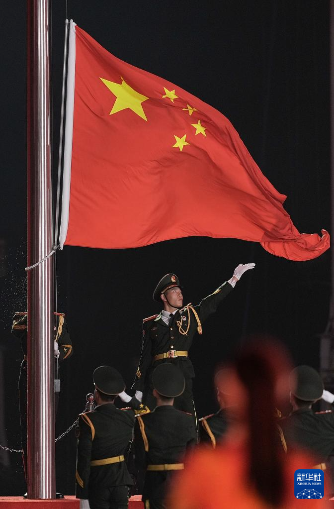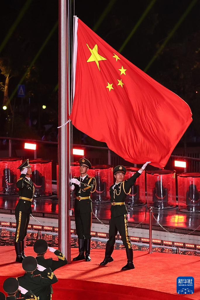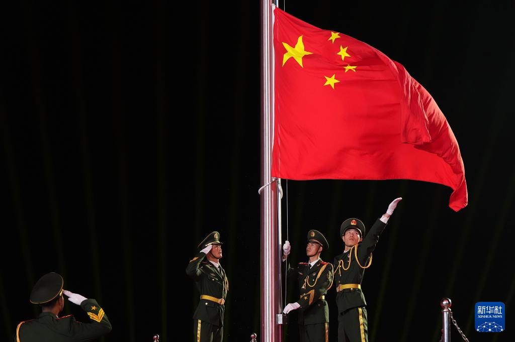 4月22日,中华人民共和国国旗在开幕式上升起。新华社记者 胥冰洁 摄