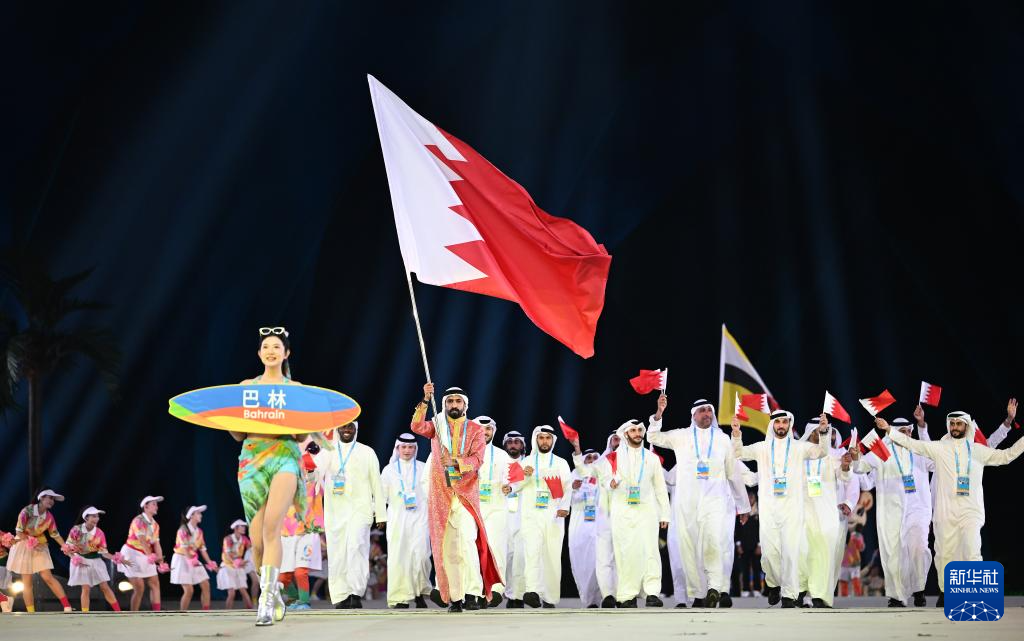 4月22日,巴林体育代表团在开幕式上入场。新华社记者 赵子硕 摄