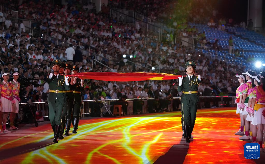 4月22日,中华人民共和国国旗在开幕式上入场。新华社记者 赵颖全 摄