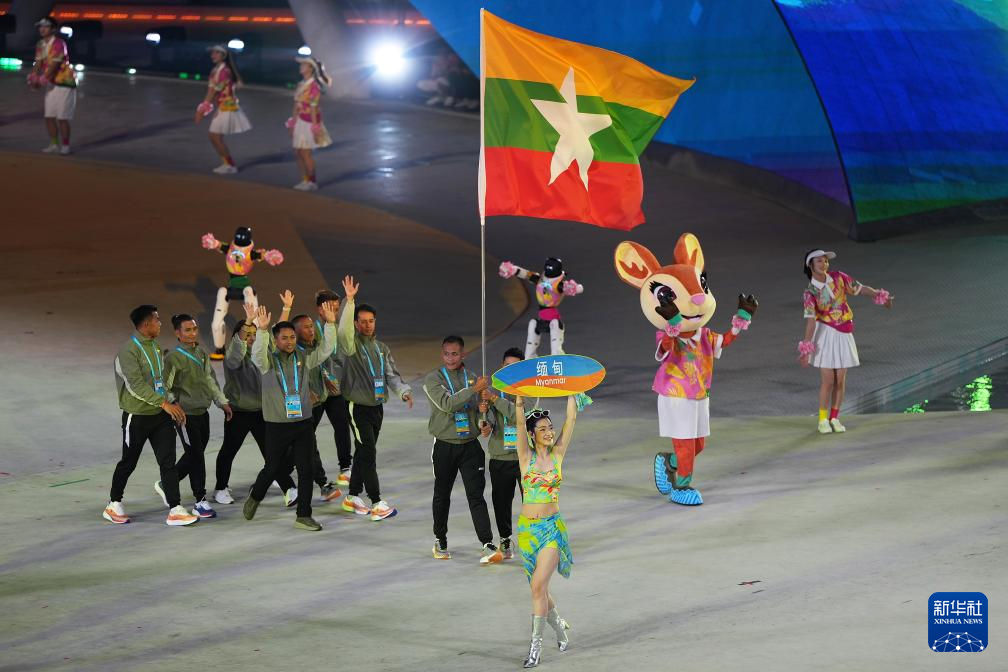 4月22日,缅甸体育代表团在开幕式上入场。新华社记者 胥冰洁 摄