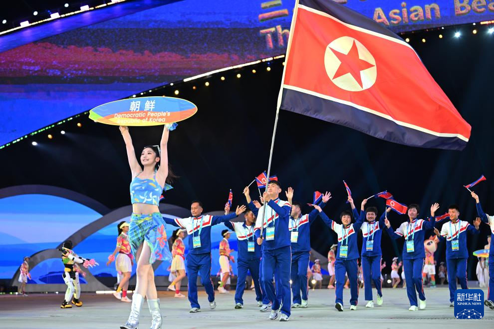 4月22日,朝鲜体育代表团在开幕式上入场。新华社记者 胥冰洁 摄