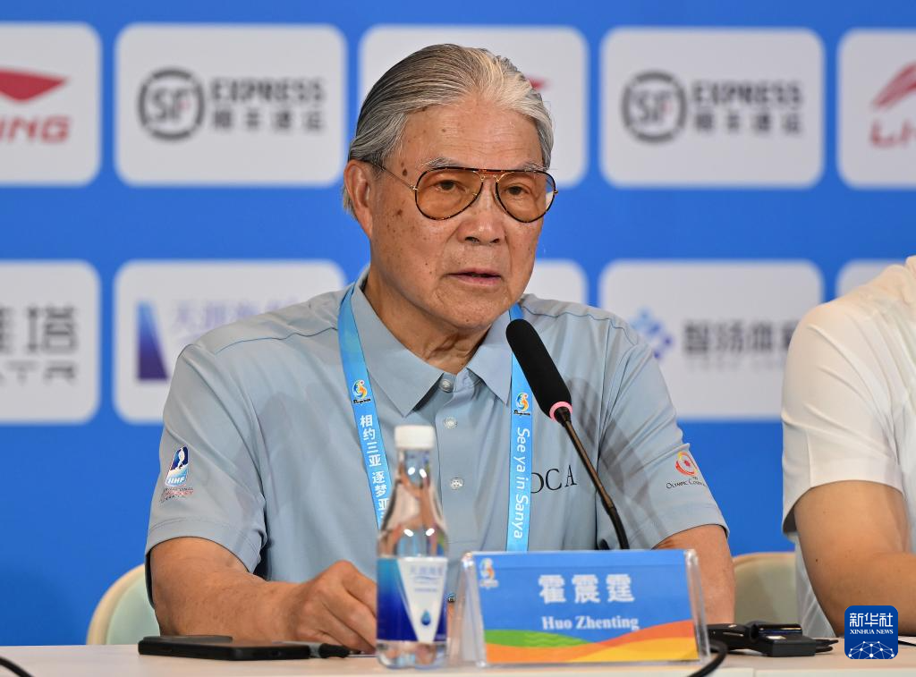 4月23日,亚奥理事会第一副主席霍震霆在新闻发布会上发言。新华社记者 郭程 摄