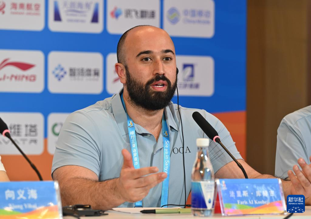 4月23日,亚奥理事会媒体委员会主席法里斯·库赫吉在新闻发布会上发言。新华社记者 郭程 摄