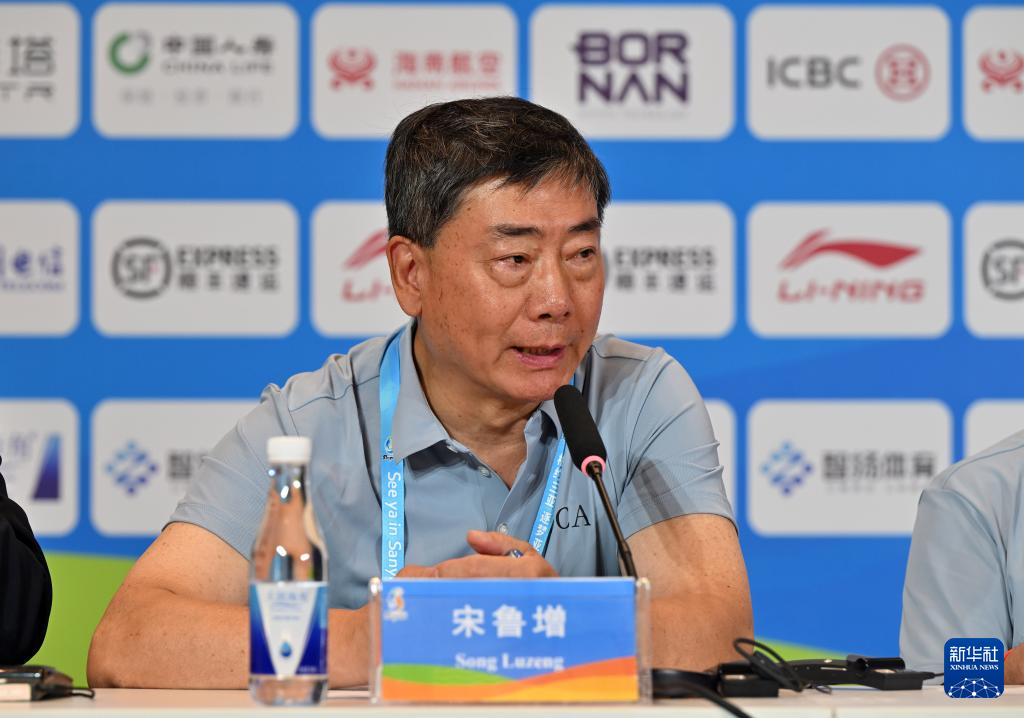 4月23日,亚奥理事会副主席、体育委员会主席宋鲁增在新闻发布会上发言。