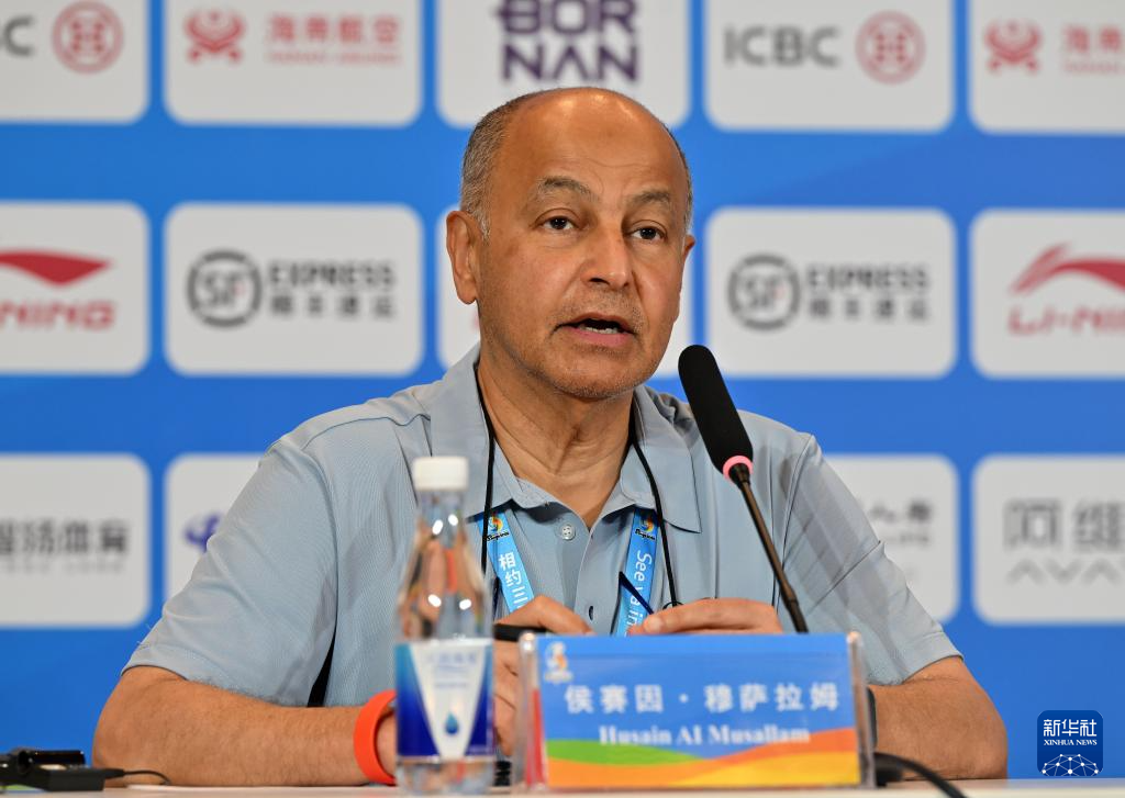 4月23日,亚奥理事会总干事侯赛因·穆萨拉姆在新闻发布会上发言。新华社记者 郭程 摄