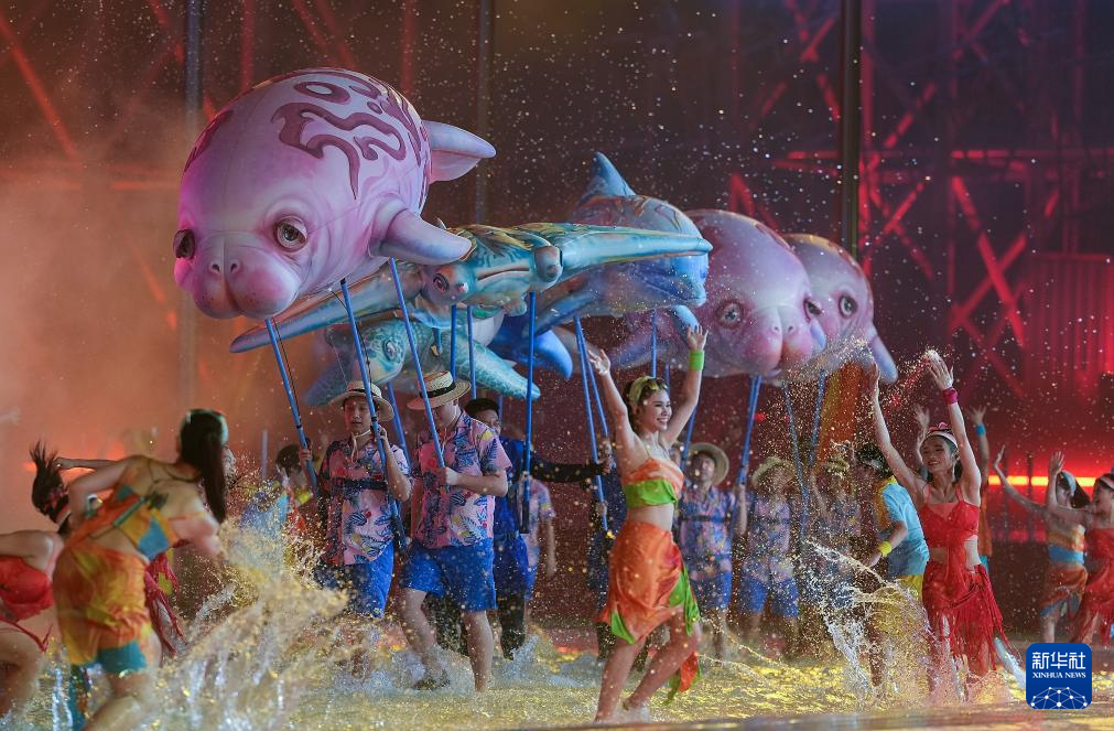 缤纷的色彩涌入眼帘,热烈的声浪响彻海湾。“亚亚”和海南各族青年一同运动嬉戏、欢歌热舞。冲浪少女驭浪前行,竹竿舞者灵巧穿梭,民族乐声动情流淌,黎锦苗绣绽放千年魅力。