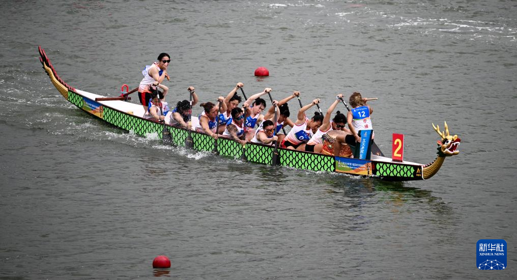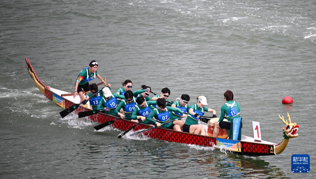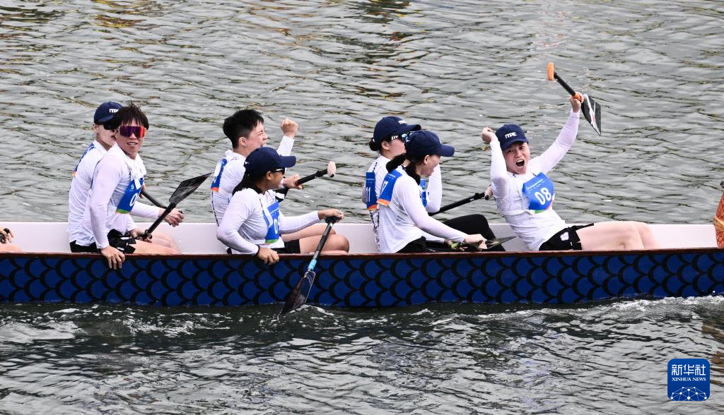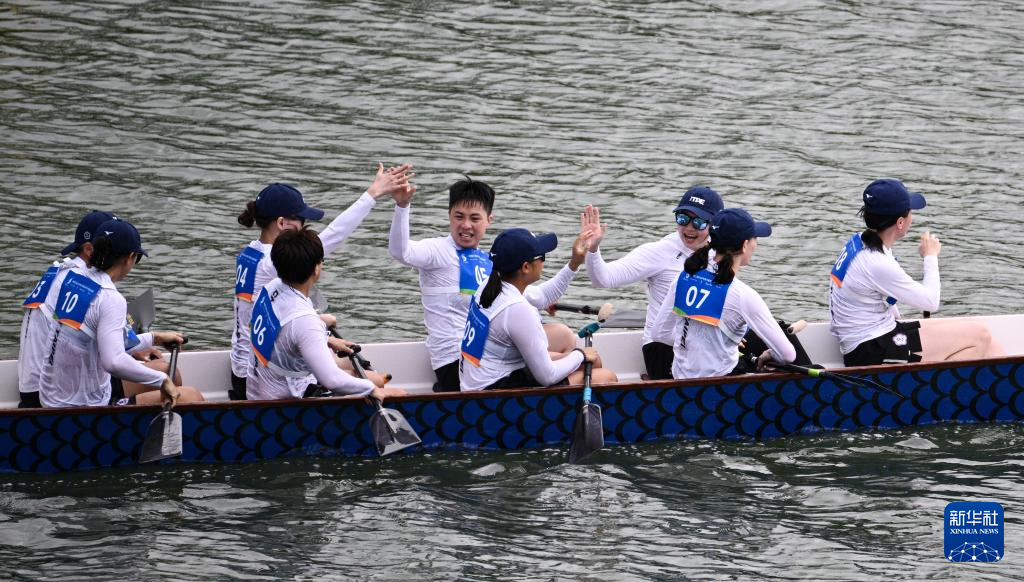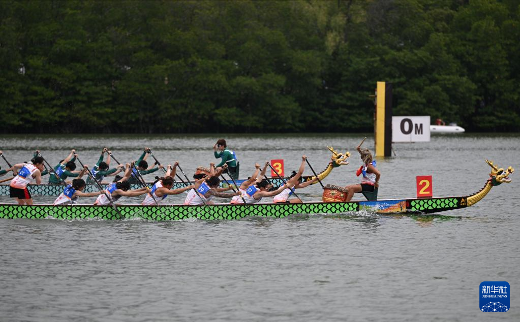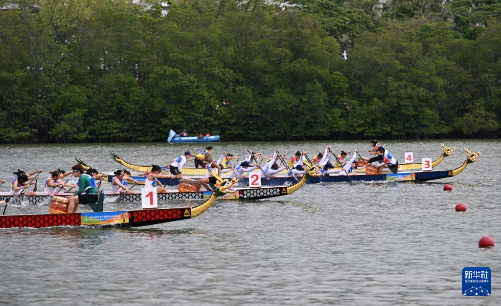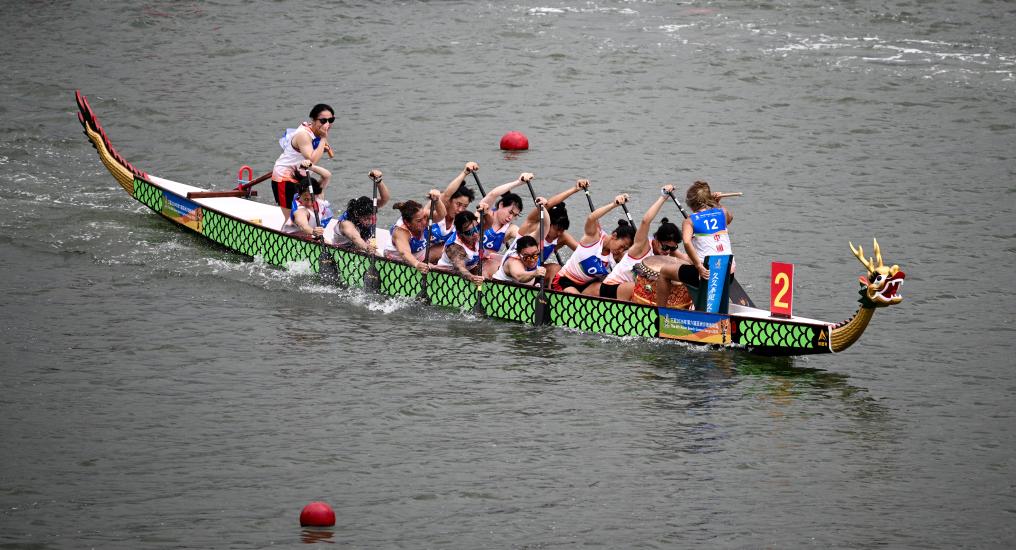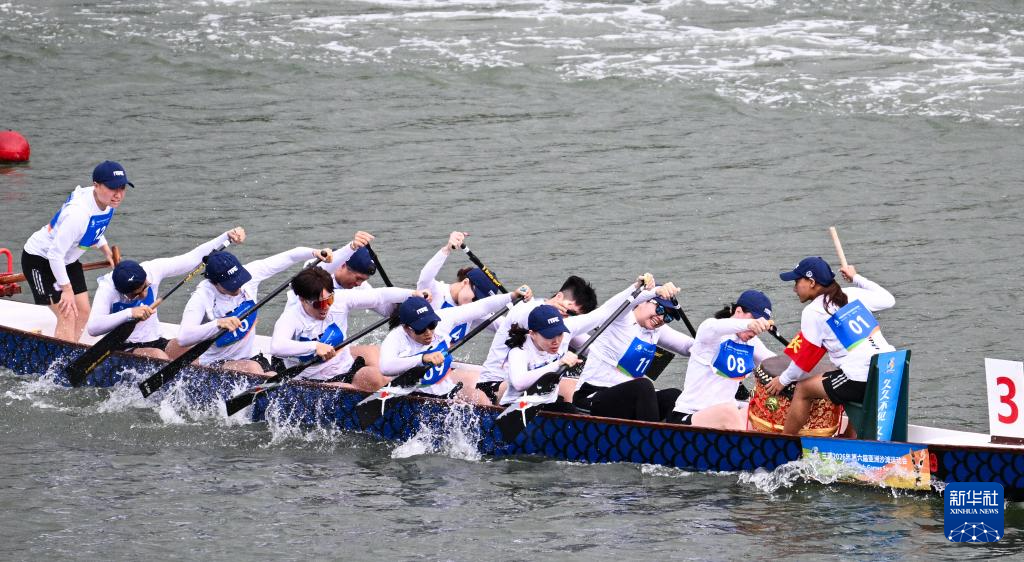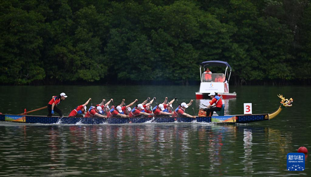 4月24日,第六届亚洲沙滩运动会女子组12人龙舟100米直道赛在海南三亚举行。