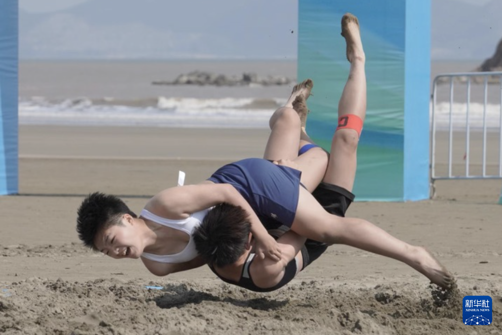 图为第六届亚沙会沙滩卡巴迪男子小组赛。新华社记者 赵子硕 摄