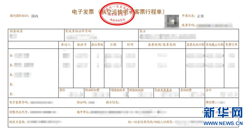 电子客票行程单。新华网发