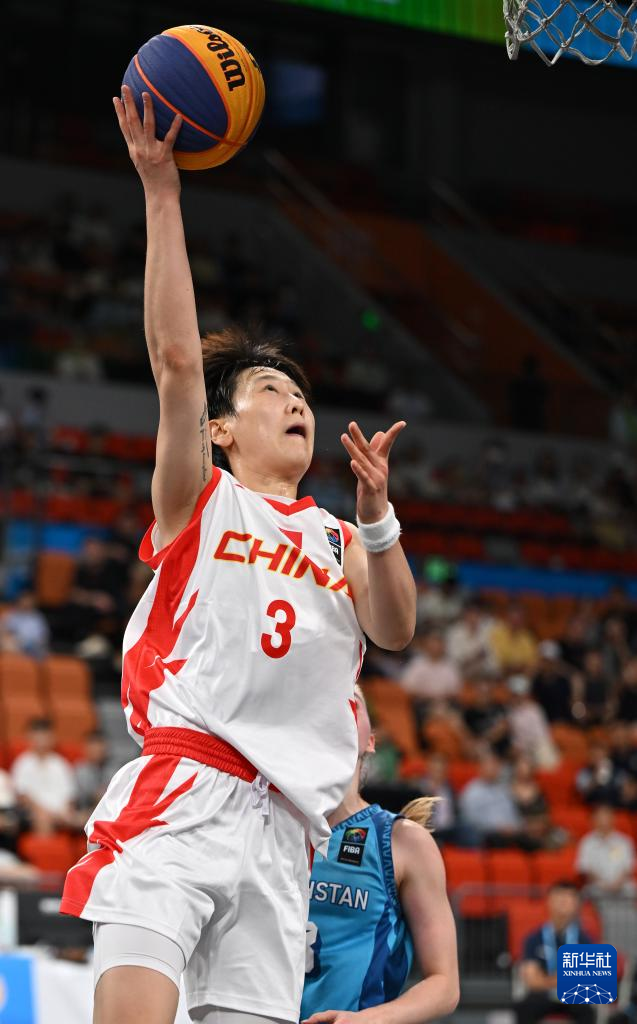 4月25日,在海南三亚举行的第六届亚洲沙滩运动会三人篮球女子小组赛,中国队22比8战胜哈萨克斯坦队。